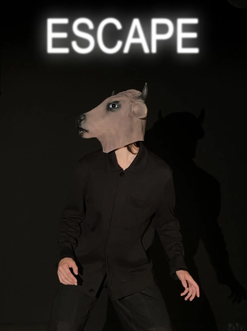 Die Waldluft ist fast regungslos, leichter Nebel liegt über dem Boden, und kleine Tiere rascheln. Der Jäger sucht mit voller Aufmerksamkeit nach seiner Beute. Als er sie in der Ferne erblickt, zielt er konzentriert – und schießt! »Escape« beginnt (wie jede gute Geschichte) mit dem Anfang: der Entstehung der Zivilisation. Mit der Geschichte der ersten Jagd, dem ersten symbolischen Moment patriarchaler Narrativ- und Identitätsbildung. Die Storyteller*in von Escape versucht, diese Entstehungsgeschichte mithilfe der Sprache des Figurentheaters neu zu deuten – durch assoziatives Denken, Perspektivwechsel, den Dialog mit Objekten und Materialien, durch Unbeholfenheit und Absurdität.